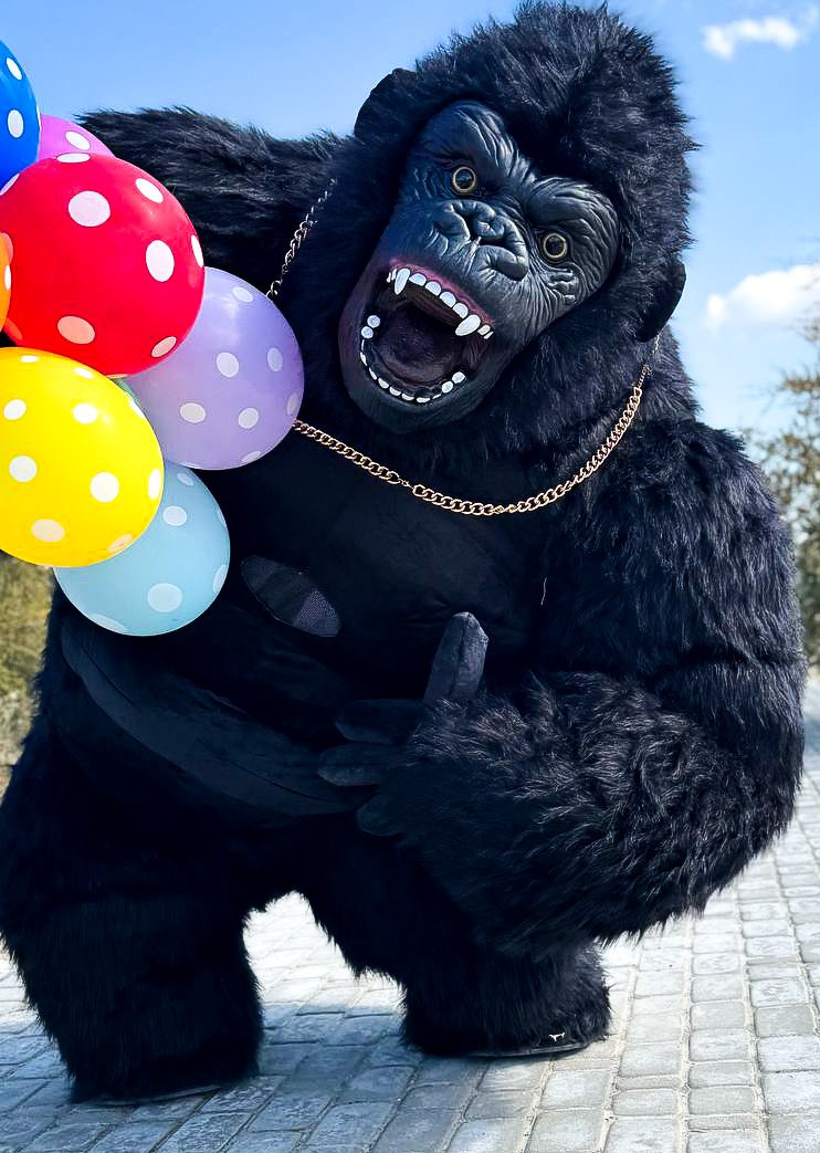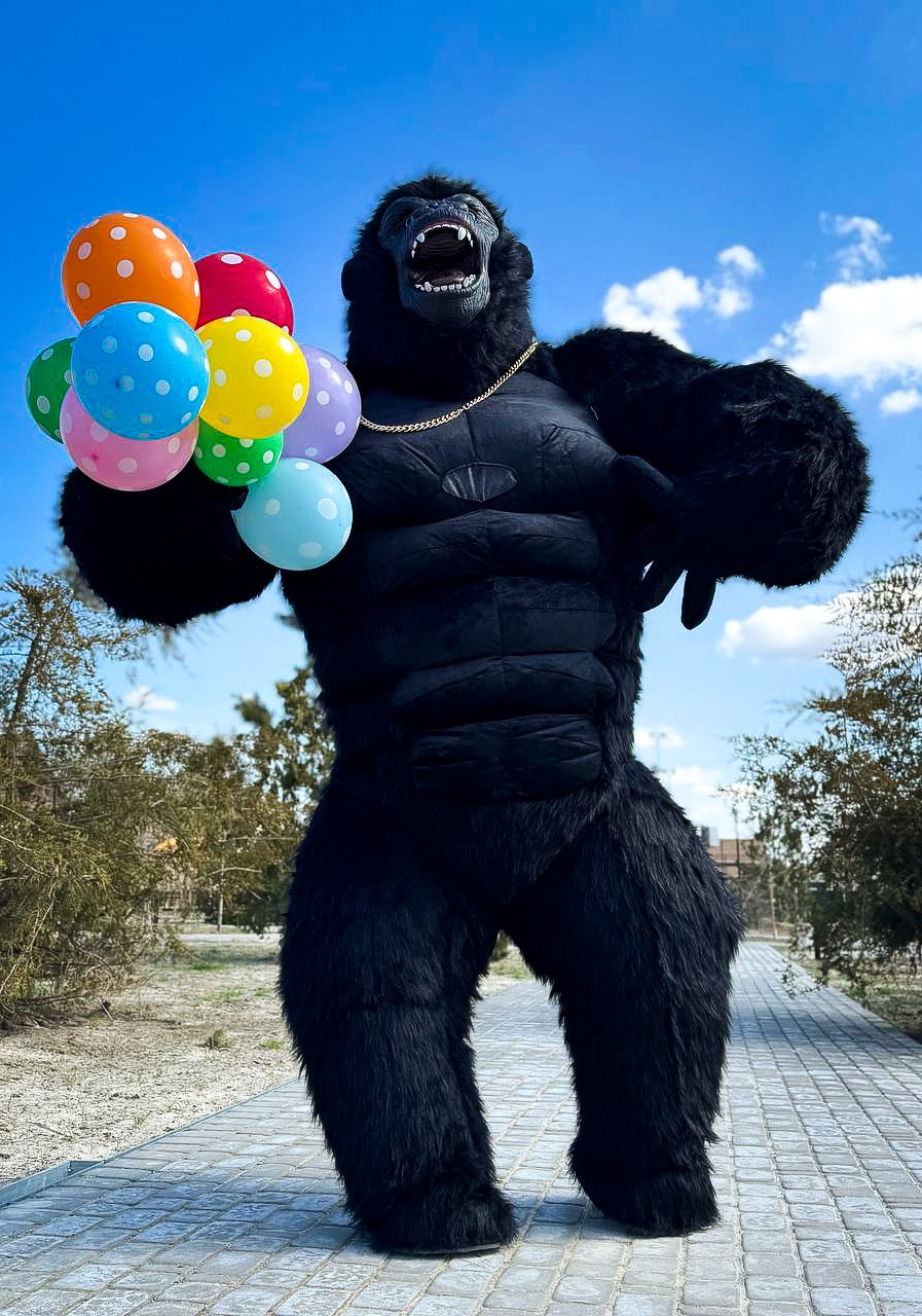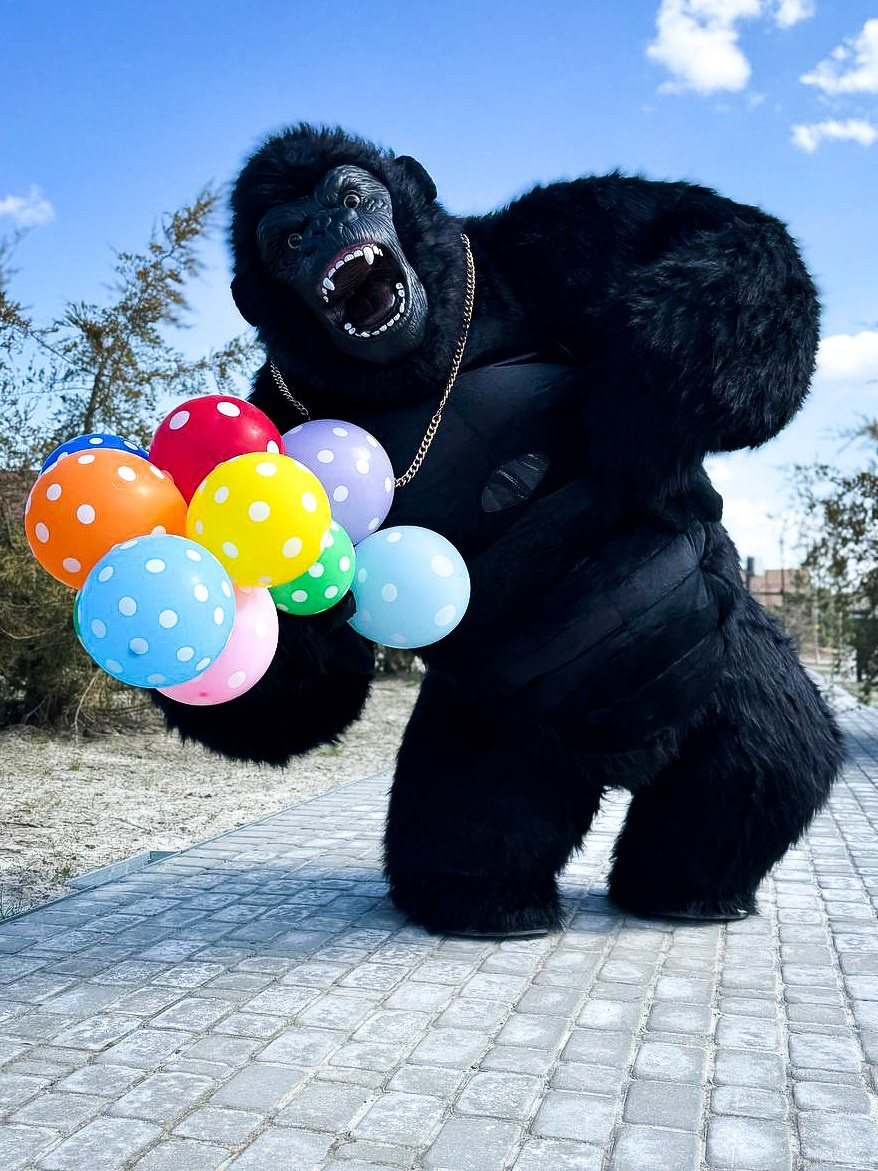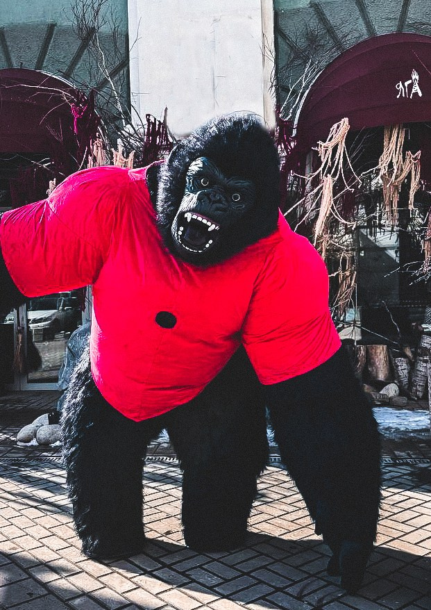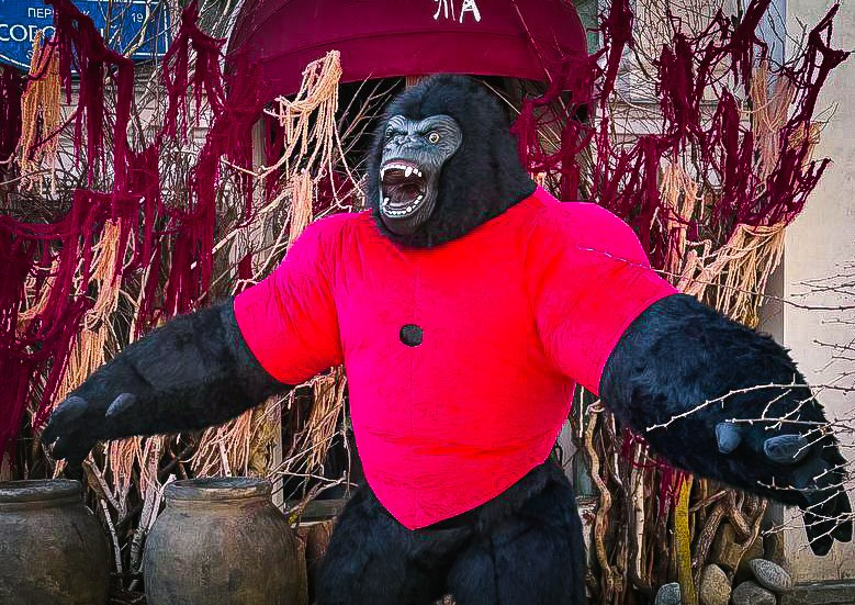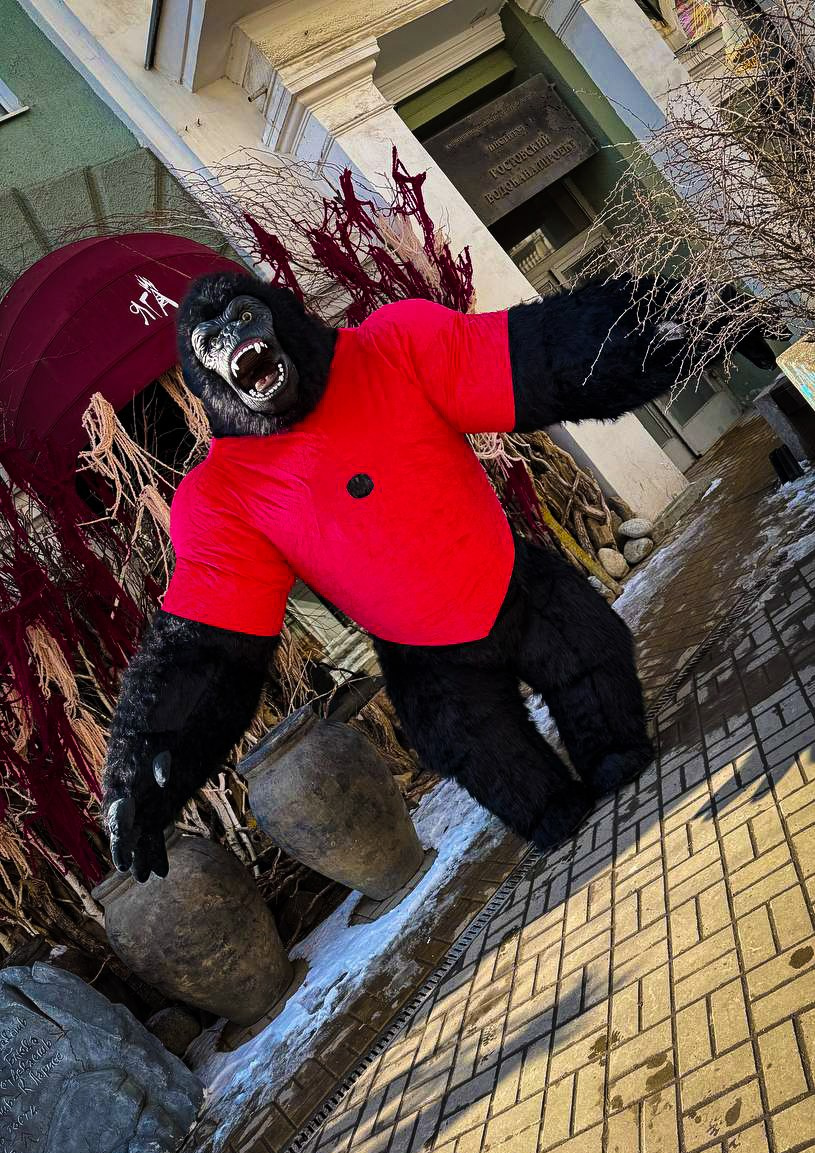 ростовая кукла горилла позирует на фото с фотографом Марина Ковалёва в городе Волгодонске