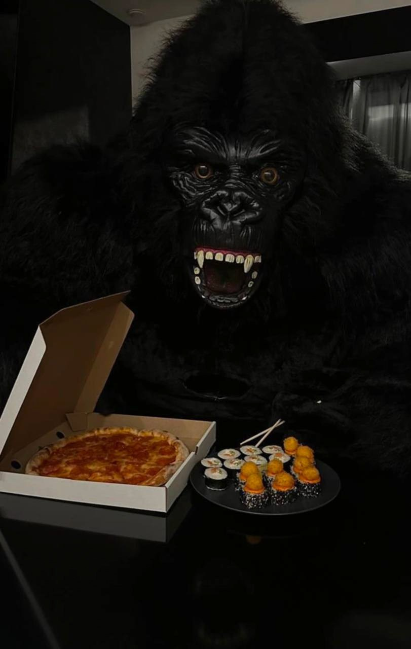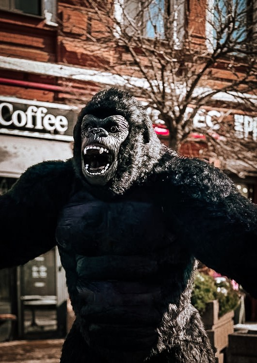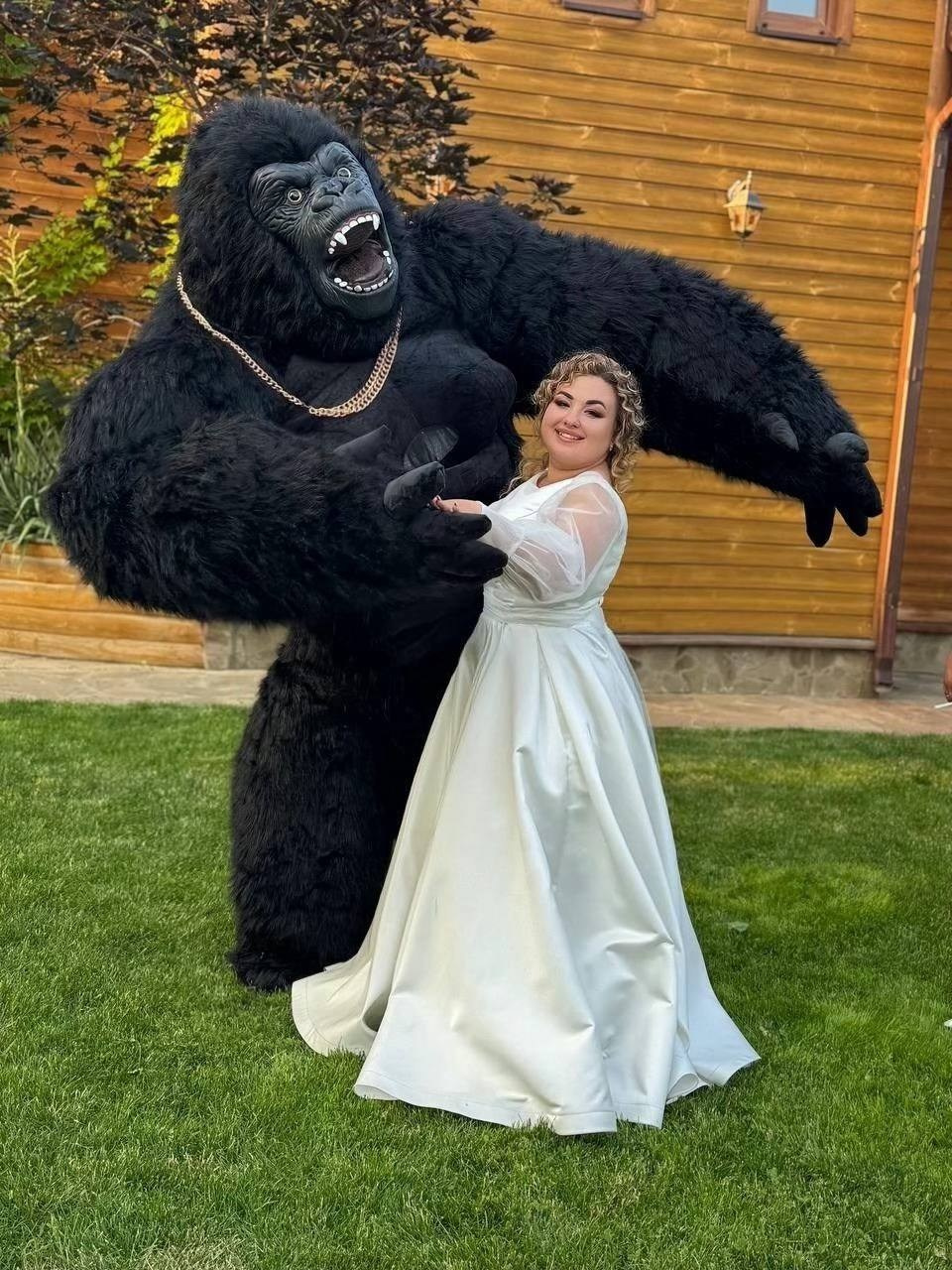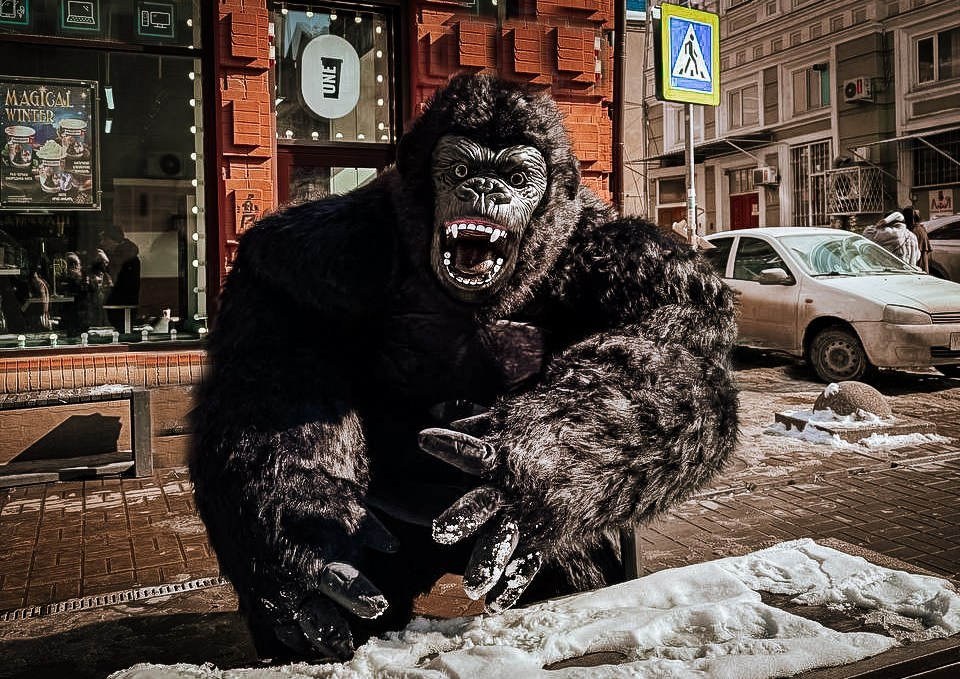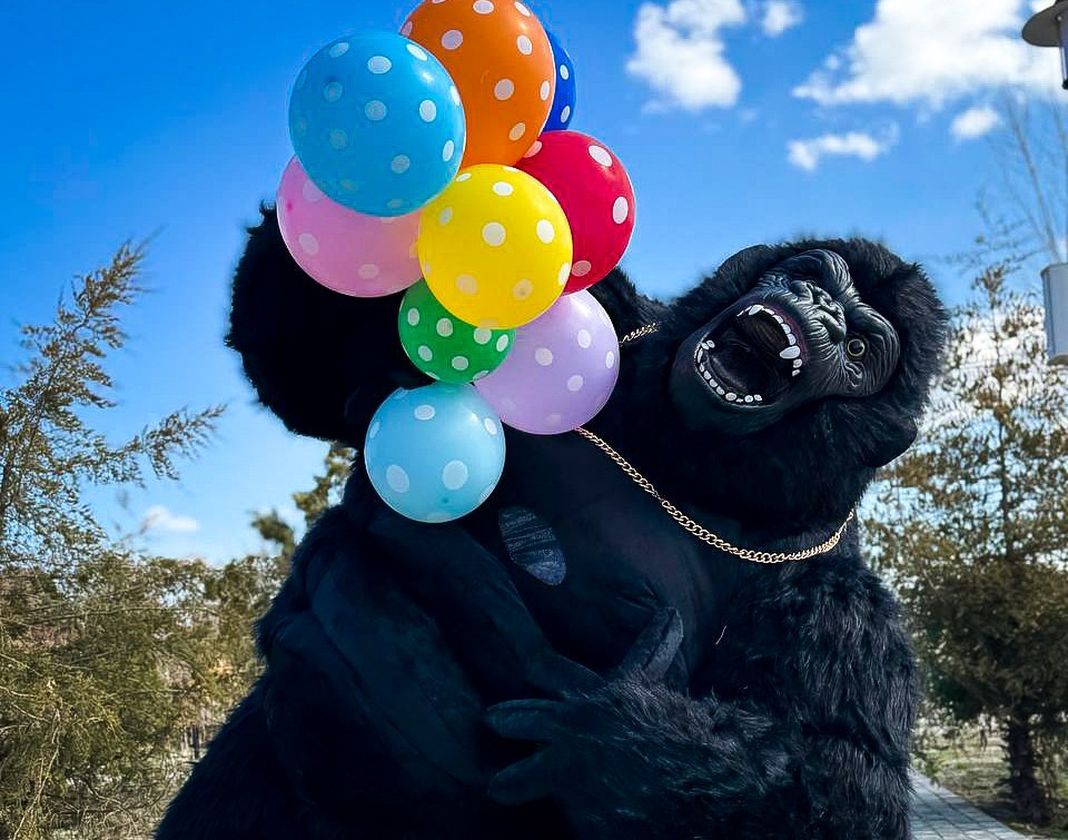ростовая кукла горилла позирует на фото с фотографом Марина Ковалёва в городе Волгодонске
